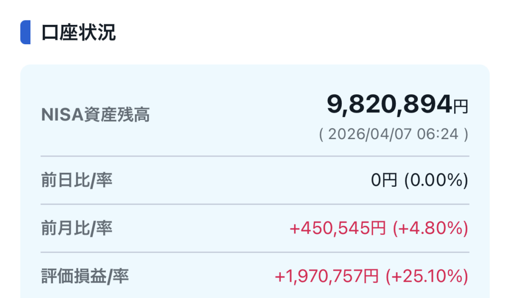 ※投稿日が遅くなったので2026年4月7日時点の結果となっております。次回からは月末時点の結果報告とします。